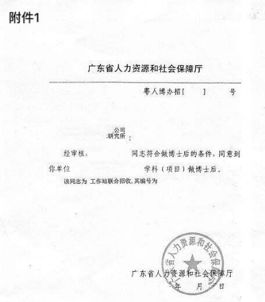 1.博士后进站:省人社厅对接收单位开具的进站批复(样式见附件1);博士后出站:省人社厅对工作单位开具的博士后研究人员分配工作介绍信(样式见附件2)。