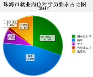 从人力资源市场招聘情况看,一季度,企业对学历的需求主要集聚在高中以下,其中,对高中学历的需求占比达46.09%,其次为初中学历,占比30.32%。