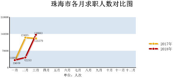一季度,进场求职人员共21.00万人次,较2017同期下降23.87%。